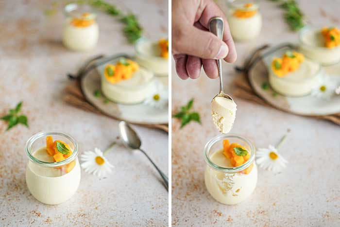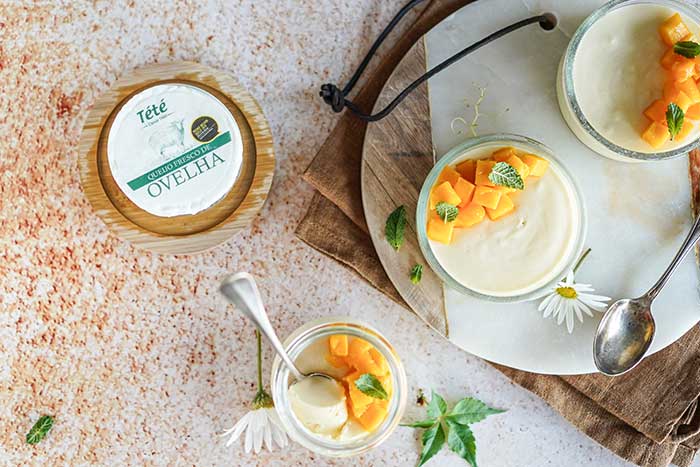 Mousse de manga e queijo fresco de ovelha